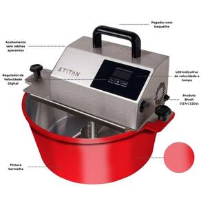 Panela misturadora de doces com capacidade de 10 litros, ideal para produções médias. Possui mistura automática, estrutura robusta, aquecimento uniforme, fácil limpeza e uso. Economiza tempo e esforço, aumentando a produtividade. Design compacto. Motor protegido em inox, pegador em baquelite. Controlador digital para ajuste de tempo e velocidade.Bowl de congelamento