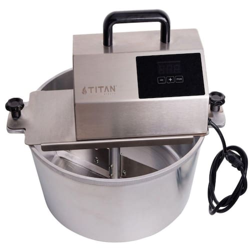 Panela misturadora de doces com capacidade de 10 litros, ideal para médias produções. Possui mistura automática, estrutura robusta, aquecimento uniforme, fácil limpeza e uso, economiza tempo e esforço, e design compacto. Conta com controlador digital para ajustar tempo e velocidade com precisão.Bowl de congelamento