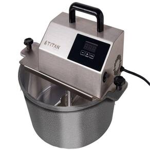 Panela misturadora de doces com capacidade de 10 litros, estrutura robusta, mistura automática, aquecimento uniforme, fácil de limpar e usar, economiza tempo e esforço, design compacto. Motor protegido em inox, pegador em baquelite. Controlador digital para ajustar tempo e velocidade. Espátula de silicone inclusa.Bowl de congelamento