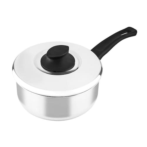 O cabo e o pomel (pegador da tampa) são confeccionados em baquelite os quais resistem ao calor propagado pelas paredes do produto ao serem levados ao fogão.