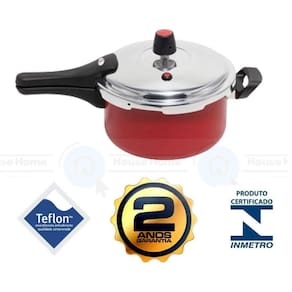 Panela De Pressão 3,0 Litros Fechamento Externo Antiaderente Teflon Vermelho 5 Camadas Teflon Certificado Pelo Inmetro Panela de pressão 3,0 Litros Fechamento Antiaderente Teflon Vermelho Rouge