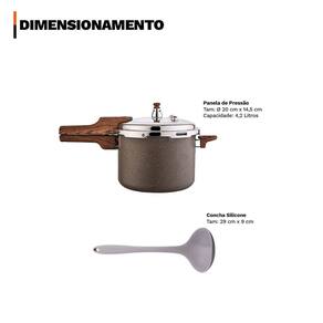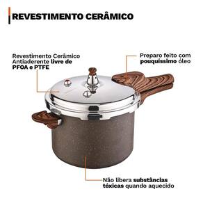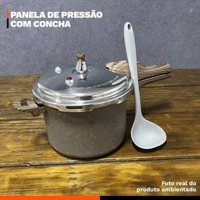 Distribuído por feheros shop Panela antiaderente 4,2 litros revestimento cerâmico indução premium e concha de silicone 29cm Atenção A panela com revestimento cerâmico possui propriedades antiaderentes que ajudam a evitar que os alimentos grudem. Porém, não é 100% antiaderente e pode exigir pequena quantidade de óleo ou para melhor desempenho. - produto certificado pelo inmetro nível a . - evite que a chama do fogão atinja as laterais da panela. - não deixe o produto superaquecer vazio. - leia atentamente a descrição e siga o passo a passo que o fabricante recomenda. Informações do produto A panela 4,2 l é versátil e robusta, compatível com fogões a gás, elétricos, vitrocerâmicos e por indução. Corpo em alumínio com revestimento cerâmico em múltiplas camadas para antiaderência durável e preparo com menos óleo. Sistema de segurança com regulador , válvula flutuante, duas válvulas adicionais, anel de vedação e tampa à prova de bloqueio. Acompanha uma concha de silicone premium 29 cm, feita em silicone e nylon resistente ao calor, que não risca o revestimento das panelas e oferece pegada ergonômica para servir feijão, caldos e sopas com praticidade. Especificações técnicas do produto Panela - compatível com fogões a gás, elétricos, vitrocerâmicos e por indução, oferecendo versatilidade para diferentes cozinhas. - revestimento cerâmico antiaderente livre de pfoa, que preserva o sabor dos alimentos e permite cozinhar com menos óleo. - cabo de baquelite com revestimento soft touch macio, que não esquenta e garante conforto e segurança no manuseio. - fundo triplo de indução que aquece rapidamente e distribui o calor de forma uniforme - sistema de segurança completo com regulador , duas válvulas de segurança adicionais, válvula flutuante, anel de vedação e tampa à prova de bloqueio Concha de silicone - alta resistência: concha feita de silicone de alta qualidade, resistente a altas temperaturas - fácil limpeza: superfície que não absorve manchas nem odores, facilitando a limpeza e mantendo os utensílios sempre higienizados e pode ser lavada na máquina de lavar louças. Ficha técnica do produto - altura com tampa 18,5 cm - altura sem tampa 14,5 cm - capacidade 4,2 l - compatibilidade indução, gás, elétrico e vitrocerâmico - comprimento total 41,5 cm - diâmetro 20 cm - dispositivos de segurança 6 sistemas de bloqueio - espessura 4 mm - material do cabo baquelite soft touch - material do corpo alumínio de alta qualidade - peso 1,450 kg - revestimento cerâmico - material da colher: silicone e nylon - medidas: c 29cm x l 9cm - peso: 110g Antes do primeiro uso - lave a panela com esponja macia e detergente neutro - seque bem com um pano limpo - unte levemente a borda do corpo e o anel de vedação com óleo vegetal - coloque água até a metade, feche, aqueça até liberar vapor - mantenha em fogo baixo por 2 minutos - deixe esfriar, lave novamente e seque - na concha, lave com sabão neutro e seque antes do primeiro uso Após o uso - aguarde a panela esfriar antes de lavar - lave com água morna, sabão neutro e esponja macia - para resíduos, deixe de molho por alguns minutos - não use abrasivos ou químicos agressivos - não segure o regulador para liberar pressão e não force a tampa - a panela não é indicada para lava-louças - a concha pode ser lavada à mão ou em lava-louças Itens inclusos no pacote 01 panela antiaderente revestimento cerâmico 4,2 l 01 concha de silicone 29 cm Todas as fotos são reais dos produtos. Qualquer dúvida, estamos à disposição Dúvidas frequentes 01 - o produto é novo Possui 02 - é compatível com fogão de indução R: sim, possui fundo especial para uso em indução, além de gás, elétrico e vitrocerâmico