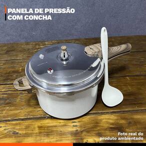 Distribuído por feheros shop Panela antiaderente 4,2 litros revestimento cerâmico indução premium e concha de silicone 29cm Atenção A panela com revestimento cerâmico possui propriedades antiaderentes que ajudam a evitar que os alimentos grudem. Porém, não é 100% antiaderente e pode exigir pequena quantidade de óleo ou para melhor desempenho. - produto certificado pelo inmetro nível a . - evite que a chama do fogão atinja as laterais da panela. - não deixe o produto superaquecer vazio. - leia atentamente a descrição e siga o passo a passo que o fabricante recomenda. Informações do produto A panela 4,2 l é versátil e robusta, compatível com fogões a gás, elétricos, vitrocerâmicos e por indução. Corpo em alumínio com revestimento cerâmico em múltiplas camadas para antiaderência durável e preparo com menos óleo. Sistema de segurança com regulador , válvula flutuante, duas válvulas adicionais, anel de vedação e tampa à prova de bloqueio. Acompanha uma concha de silicone premium 29 cm, feita em silicone e nylon resistente ao calor, que não risca o revestimento das panelas e oferece pegada ergonômica para servir feijão, caldos e sopas com praticidade. Especificações técnicas do produto Panela - compatível com fogões a gás, elétricos, vitrocerâmicos e por indução, oferecendo versatilidade para diferentes cozinhas. - revestimento cerâmico antiaderente livre de pfoa, que preserva o sabor dos alimentos e permite cozinhar com menos óleo. - cabo de baquelite com revestimento soft touch macio, que não esquenta e garante conforto e segurança no manuseio. - fundo triplo de indução que aquece rapidamente e distribui o calor de forma uniforme - sistema de segurança completo com regulador , duas válvulas de segurança adicionais, válvula flutuante, anel de vedação e tampa à prova de bloqueio Concha de silicone - alta resistência: concha feita de silicone de alta qualidade, resistente a altas temperaturas - fácil limpeza: superfície que não absorve manchas nem odores, facilitando a limpeza e mantendo os utensílios sempre higienizados e pode ser lavada na máquina de lavar louças. Ficha técnica do produto - altura com tampa 18,5 cm - altura sem tampa 14,5 cm - capacidade 4,2 l - compatibilidade indução, gás, elétrico e vitrocerâmico - comprimento total 41,5 cm - diâmetro 20 cm - dispositivos de segurança 6 sistemas de bloqueio - espessura 4 mm - material do cabo baquelite soft touch - material do corpo alumínio de alta qualidade - peso 1,450 kg - revestimento cerâmico - material da colher: silicone e nylon - medidas: c 29cm x l 9cm - peso: 110g Antes do primeiro uso - lave a panela com esponja macia e detergente neutro - seque bem com um pano limpo - unte levemente a borda do corpo e o anel de vedação com óleo vegetal - coloque água até a metade, feche, aqueça até liberar vapor - mantenha em fogo baixo por 2 minutos - deixe esfriar, lave novamente e seque - na concha, lave com sabão neutro e seque antes do primeiro uso Após o uso - aguarde a panela esfriar antes de lavar - lave com água morna, sabão neutro e esponja macia - para resíduos, deixe de molho por alguns minutos - não use abrasivos ou químicos agressivos - não segure o regulador para liberar pressão e não force a tampa - a panela não é indicada para lava-louças - a concha pode ser lavada à mão ou em lava-louças Itens inclusos no pacote 01 panela antiaderente revestimento cerâmico 4,2 l 01 concha de silicone 29 cm Todas as fotos são reais dos produtos. Qualquer dúvida, estamos à disposição Dúvidas frequentes 01 - o produto é novo Possui 02 - é compatível com fogão de indução R: sim, possui fundo especial para uso em indução, além de gás, elétrico e vitrocerâmico