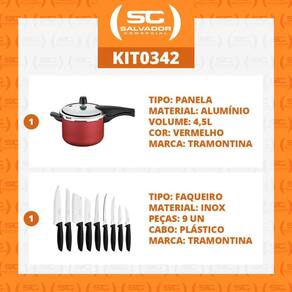 Componentes do kit:- 1 panela 4,5 vancouver vermelho -tramontina- 1 conjunto facas 9pç - tramontina- não indicado para fogão indução.Panela pressão 4,5 lts antiaderente tramontina vancouverdescrição ficha técnica:modelo vancouver starfloncód. 20582/620 grafitecód. 20582/720 vermelhaeficiente e segura.Produzida em alumínio com revestimento interno e externo em antiaderente starflon t1tampa em aluminio com acabamento externo polido e interno satinado tampa não é antiaderente .Alças e cabo superior e inferior em baquelite.Sitema de segurança lateral.Válvula de segurança.Válvula de trabalho alívio .- revestimento antiaderente starflon.- maior resistência á desgaste por fricção, raspagem.- pode cozinhar fogão gás, elétrico e também vitrocerâmico.- fácil manuseio e limpeza.- capacidade 4,5l.- 1 unidade por embalagem.- 3 sistema de segurança 1 cabo e 2 na tampa. peso líquido: 1,6 kgpeso bruto: 1,75 kgmedidas internas panela : 19,5cm diâmetro x 14,5 alt. verifique o nivel máxima informado no interior panela medida externa: 22,9cm a x 40,8cm l x 23,1 p - mais detalhes, na foto do anuncio .Jogo de facas plenus 9pç tramontina 23498/048faca e garfo.Descrição ficha técnica:modelo plenus 9 peças.Cód. 23498/048 cor preta.Uso seguro e adequado:- antes da primeira utilização, lave bem as peças e seque-as.- produto cortants e perfurantes, tenha cuidado e mantenha sempre fora de alcance das crianças.- para maior durabilidade dos produtos, recomenda-se secar bem antes de gaurar, mesmo após lavagem em máquinas.- para descarte dos produtos e embalagem, sega as orientações de reciclagem vigente.Conteudo:1 faca lâmina 7,6cm para tornear torneia, descasca e esculpe frutas e verduras .1 faca lâmina 7,6cm para legumes ideal cortar, descascar e fazer cortes delicados .1 faca lâmina 12,7cm para churrasco e frutas com fio serrilhado para corte de carne cozidas e frutas. Não necessita reafiação .1 faca lâmina 12,7cm para tomates a lâmina microserrilhada rompe e pela do tomate sem amassar 1 faca lâmina 12,7cm para dessosa ideal para separar a carne dos ossos e tirar a gordura .1 faca lâmina 12,7cm santoku ideal para cortar, fatiar e picar .1 faca lâmina 17,8cm pão a lâmina serrilhada corta sem amassar .1 faca lâmina 17,8cm chef toda versatilidade da protagonista da cozinha .1 faca lâmina 12,7cm cutelo ideal para quebrar e separar os ossos .- lâmina em aço inox ,maior resistência á desgaste por fricção, raspagem.- fácil manuseio e limpeza sempre cuidando com navalha e pontas .- 9 facas por embalagem.Peso líquido: 1,5 kgpeso bruto: 1,65 kgexpecificação da embalagem do kit:peso bruto: 3,4kgmedida embalagem: 23cm alt x 39cm l x 43cm p.