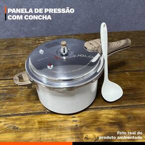 Distribuído por feheros shop Panela antiaderente 6,8 litros revestimento cerâmico indução premium e concha de silicone 29cm Atenção A panela com revestimento cerâmico possui propriedades antiaderentes que ajudam a evitar que os alimentos grudem. Porém, não é 100% antiaderente e pode exigir pequena quantidade de óleo ou para melhor desempenho. - produto certificado pelo inmetro nível a . - evite que a chama do fogão atinja as laterais da panela. - não deixe o produto superaquecer vazio. - leia atentamente a descrição e siga o passo a passo que o fabricante recomenda. Informações do produto A panela 6,8 l é versátil e robusta, compatível com fogões a gás, elétricos, vitrocerâmicos e por indução. Corpo em alumínio com revestimento cerâmico em múltiplas camadas para antiaderência durável e preparo com menos óleo. Sistema de segurança com regulador , válvula flutuante, duas válvulas adicionais, anel de vedação e tampa à prova de bloqueio. Acompanha uma concha de silicone premium 29 cm, feita em silicone e nylon resistente ao calor, que não risca o revestimento das panelas e oferece pegada ergonômica para servir feijão, caldos e sopas com praticidade. Especificações técnicas do produto Panela - compatível com fogões a gás, elétricos, vitrocerâmicos e por indução, oferecendo versatilidade para diferentes cozinhas. - revestimento cerâmico antiaderente livre de pfoa, que preserva o sabor dos alimentos e permite cozinhar com menos óleo. - fundo triplo de indução que aquece rapidamente e distribui o calor de forma uniforme, economizando tempo e energia no preparo das refeições. - sistema de segurança completo com regulador , duas válvulas de segurança adicionais, válvula flutuante, anel de vedação e tampa à prova de bloqueio Concha de silicone - alta resistência: concha feita de silicone de alta qualidade, resistente a altas temperaturas, garantindo uma longa vida útil sem deformações. - fácil limpeza: superfície que não absorve manchas nem odores, facilitando a limpeza e mantendo os utensílios sempre higienizados e pode ser lavada na máquina de lavar louças. Ficha técnica do produto - altura com tampa 20 cm - altura sem tampa 16 cm - capacidade 6,8 l - compatibilidade indução, gás, elétrico e vitrocerâmico - comprimento total 47 cm - diâmetro 24 cm - dispositivos de segurança 6 sistemas de bloqueio - espessura 4 mm - material do cabo baquelite soft touch - material do corpo alumínio de alta qualidade - peso 2,200 kg - revestimento cerâmico - material da colher: silicone e nylon - medidas: c 29cm x l 9cm - peso: 110g Antes do primeiro uso - lave a panela com esponja macia e detergente neutro - seque bem com um pano limpo - unte levemente a borda do corpo e o anel de vedação com óleo vegetal - coloque água até a metade, feche, aqueça até liberar vapor - mantenha em fogo baixo por 2 minutos - deixe esfriar, lave novamente e seque - na concha, lave com sabão neutro e seque antes do primeiro uso Após o uso - aguarde a panela esfriar antes de lavar - lave com água morna, sabão neutro e esponja macia - para resíduos, deixe de molho por alguns minutos - não use abrasivos ou químicos agressivos - não segure o regulador para liberar pressão e não force a tampa - a panela não é indicada para lava-louças - a concha pode ser lavada à mão ou em lava-louças Itens inclusos no pacote 01 panela antiaderente revestimento cerâmico 6,8 l 01 concha de silicone 29 cm Todas as fotos são reais dos produtos. Qualquer dúvida, estamos à disposição Dúvidas frequentes 01 - o produto é novo Possui 02 - é compatível com fogão de indução R: sim, possui fundo especial para uso em indução, além de gás, elétrico e vitrocerâmico