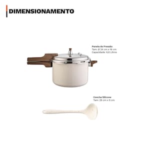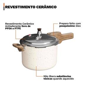 Panela Pressão 6,8L Cerâmico Indução Com Concha - Vanilla