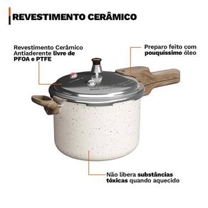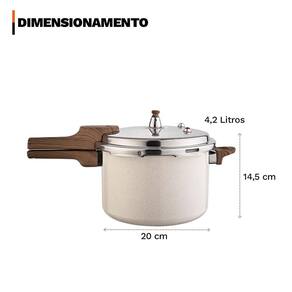 Distribuído por feheros shop Panela antiaderente 4,2 litros revestimento cerâmico indução premium Atenção A panela com revestimento cerâmico possui propriedades antiaderentes que ajudam a evitar que os alimentos grudem. Porém, não é 100% antiaderente e pode exigir pequena quantidade de óleo ou para melhor desempenho. - produto certificado pelo inmetro nível a . - evite que a chama do fogão atinja as laterais da panela. - não deixe o produto superaquecer vazio. - leia atentamente a descrição e siga o passo a passo que o fabricante recomenda. Informações do produto A panela 4,2 litros é ideal para famílias menores ou para quem deseja preparar receitas em quantidades moderadas. Compatível com fogões a gás, elétricos, vitrocerâmicos e por indução, ela garante versatilidade para qualquer cozinha. Sua estrutura em alumínio de alta qualidade, combinada ao revestimento cerâmico antiaderente em múltiplas camadas, proporciona resistência e longa durabilidade, evitando que os alimentos grudem e permitindo o uso de menos óleo. Especificações técnicas - compatível com fogões a gás, elétricos, vitrocerâmicos e por indução, oferecendo versatilidade para diferentes cozinhas. - revestimento cerâmico antiaderente livre de pfoa, que preserva o sabor dos alimentos e permite cozinhar com menos óleo. - cabo de baquelite com revestimento soft touch macio, que não esquenta e garante conforto e segurança. - fundo triplo de indução que aquece rapidamente e distribui o calor de forma uniforme, economizando tempo e energia no preparo das refeições. - estrutura em alumínio de alta resistência, com duas camadas de revestimento cerâmico e uma camada especial resistente a altas temperaturas, garantindo durabilidade e desempenho superior. - sistema de segurança completo com regulador , duas válvulas de segurança adicionais, válvula flutuante, anel de vedação e tampa à prova de bloqueio. Ficha técnica do produto - altura com tampa: 18,5 cm - altura sem tampa: 14,5 cm - capacidade: 4,2 l - compatibilidade: fogões de indução, a gás, elétricos e vitrocerâmicos - comprimento total: 41,5 cm - certificação: inmetro nível a - diâmetro: 20 cm - dispositivos de segurança: 6 sistemas de bloqueio - espessura: 4 mm - material do cabo: baquelite soft touch - material do corpo: alumínio de alta qualidade - peso: 1,450 kg - revestimento: cerâmico Antes do primeiro uso - lave a panela com esponja macia e detergente líquido. - seque bem com pano limpo. - coloque uma fina camada de óleo vegetal na borda do corpo e no anel de vedação. - coloque água até a metade da panela, feche a tampa e aqueça até que o regulador libere o vapor. - leve ao fogo baixo por 2 minutos. - deixe esfriar, lave novamente e seque antes de usar. Após o uso - aguarde a panela esfriar antes de lavar. - lave manualmente com água morna, sabão neutro e esponja macia. - para remover resíduos, deixe de molho em água por alguns minutos. - não utilize esponjas ou produtos abrasivos. - nunca segure o regulador para liberar a pressão e jamais force a abertura da tampa, pois ela só se abrirá quando a pressão - estiver totalmente liberada. - não é indicado o uso em lava-louças, para preservar o revestimento cerâmico e garantir maior durabilidade. Item incluso no pacote - 01 panela antiaderente revestimento cerâmico 4,2 litros Todas as fotos são reais dos produtos. Qualquer dúvida, estamos à disposição. Dúvidas frequentes 01- o produto é novo Possui R: sim, o produto é novo e possui de 3 meses conforme as normas do fabricante. 02- é compatível com fogão de indução R: sim, ele possui fundo especial que permite o uso em fogões de indução, além de fogões a gás, elétricos e vitrocerâmicos.