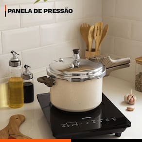 Distribuído por feheros shop Panela antiaderente 6,8 litros revestimento cerâmico indução premium Atenção A panela com revestimento cerâmico possui propriedades antiaderentes que ajudam a evitar que os alimentos grudem. Porém, não é 100% antiaderente e pode exigir pequena quantidade de óleo ou para melhor desempenho. O revestimento cerâmico é uma alternativa saudável e ecológica, pois não libera substâncias tóxicas quando aquecido. - produto certificado pelo inmetro nível a . - evite que a chama do fogão atinja as laterais da panela. - não deixe o produto superaquecer vazio. - leia atentamente a descrição e siga o passo a passo que o fabricante recomenda. Informações do produto A panela 6,8 litros é ideal para famílias grandes ou para quem gosta de preparar receitas em maior quantidade. Compatível com fogões a gás, elétricos, vitrocerâmicos e por indução, ela garante versatilidade para qualquer cozinha. Sua estrutura em alumínio de alta qualidade, combinada ao revestimento cerâmico antiaderente em múltiplas camadas, proporciona resistência e longa durabilidade, evitando que os alimentos grudem e permitindo o uso de menos óleo, tornando as refeições mais saudáveis. Especificações técnicas - compatível com fogões a gás, elétricos, vitrocerâmicos e por indução, oferecendo versatilidade para diferentes cozinhas. - revestimento cerâmico antiaderente livre de pfoa, que preserva o sabor dos alimentos e permite cozinhar com menos óleo. - cabo de baquelite com revestimento soft touch macio, que não esquenta e garante conforto e segurança. - estrutura em alumínio de alta resistência, com duas camadas de revestimento cerâmico e uma camada especial resistente a altas temperaturas, garantindo durabilidade e desempenho superior. - sistema de segurança completo com regulador , duas válvulas de segurança adicionais, válvula flutuante, anel de vedação e tampa à prova de bloqueio. Ficha técnica do produto - altura com tampa: 20 cm - altura sem tampa: 16 cm - capacidade: 6,8 l - compatibilidade: fogões de indução, a gás, elétricos e vitrocerâmicos - comprimento total: 47 cm - certificação: inmetro nível a - diâmetro: 24 cm - dispositivos de segurança: 6 sistemas de bloqueio - espessura: 4 mm - material do cabo: baquelite soft touch - material do corpo: alumínio de alta qualidade - peso: 2,200 kg - revestimento: cerâmico Antes do primeiro uso - lave a panela com esponja macia e detergente líquido. - seque bem com pano limpo. - coloque uma fina camada de óleo vegetal na borda do corpo e no anel de vedação. - coloque água até a metade da panela, feche a tampa e aqueça até que o regulador libere o vapor. - leve ao fogo baixo por 2 minutos. - deixe esfriar, lave novamente e seque antes de usar. Após o uso - aguarde a panela esfriar antes de lavar. - lave manualmente com água morna, sabão neutro e esponja macia. - para remover resíduos, deixe de molho em água por alguns minutos. - não utilize esponjas ou produtos abrasivos. - nunca segure o regulador para liberar a pressão e jamais force a abertura da tampa, pois ela só se abrirá quando a pressão estiver totalmente liberada. - não é indicado o uso em lava-louças, para preservar o revestimento cerâmico e garantir maior durabilidade. Item incluso no pacote - 01 panela antiaderente revestimento cerâmico 6,8 litros Todas as fotos são reais dos produtos. Qualquer dúvida, estamos à disposição. Dúvidas frequentes 01- o produto é novo Possui R: sim, o produto é novo e possui de 3 meses conforme as normas do fabricante. 02- é compatível com fogão de indução R: sim, ele possui fundo especial que permite o uso em fogões de indução, além de fogões a gás, elétricos e vitrocerâmicos.