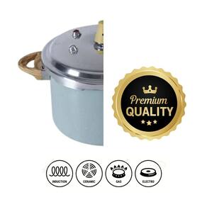 Diferenciais: a panela de pressão com fundo de indução da linha ceramic life pressure/brinox é fabricada em estrutura de alumínio, que permite que os alimentos cozinhem de maneira uniforme e mais rápida. O antiaderente pro-ceramic premium não deixa os alimentos grudarem e facilita a limpeza. Além disso, a panela de pressão conta com quatro dispositivos de segurança, que evitam acidentes. Produto de alta tecnologia, com dois anos de garantia contra defeitos de fabricação. pro-ceramic premium: fabricada com os mais altos padrões de tecnologia, a panela de pressão com fundo de indução 4,2 l da brinox tem revestimento antiaderente pro-ceramic premium, que garante durabilidade, robustez e facilita a limpeza, não deixando os alimentos grudarem. Sua composição é livre de metais pesados e elementos prejudiciais à saúde pfoa free . Possui classificação de antiaderência a ótima no inmetro. materiais: a panela de pressão com indução 4,2 l da linha pressure/brinox tem pintura externa siliconada na cor verde e estrutura em alumínio que cozinha por igual e mais rápido. A tampa conta com quatro dispositivos de segurança para saída do vapor, evitando acidentes em caso de pressurização excessiva. O fundo permite que a panela seja utilizada em todos os tipos de fogões. Cabo e alça são em baquelite com acabamento soft-touch e efeito amadeirado. O revestimento é em pro-ceramic premium. especificações técnicas: a panela de pressão com fundo de indução da linha ceramic life pressure/brinox tem capacidade para 4,2 litros, 20 cm de diâmetro, 14,5 cm de altura e acabamento na cor verde com grânulos brancos. A tampa possui quatro dispositivos de segurança, sendo: trava de segurança, válvula de trabalho, escape de segurança e válvula de segurança. A panela conta com alça e cabo em baquelite. O revestimento interno é em pro-ceramic premium. recomendações: fique atento às instruções para panela de pressão com fundo de indução da linha ceramic life super/ brinox: Antes do primeiro uso, unte a parte interna com óleo ou qualquer outro tipo de gordura. Leve o produto ao fogo baixo até aquecer o conteúdo e deixe esfriar. Descarte o conteúdo e lave com água morna, esponja macia e sabão neutro para eliminar qualquer resíduo Não levar à lava-louças, ao forno ou micro-ondas Respeite a capacidade máxima de 4,2 litros resumo Panela de pressão com fundo de indução da linha ceramic life pressure/brinox Revestimento antiaderente pro-ceramic premium Cor verde com grânulos brancos Pintura externa siliconada Capacidade para 4,2 litros Dimensões: diâmetro de 20 cm e altura de 14,5 cm Pode ser usada em todos os modelos de fogões Possui quatro dispositivos de segurança: trava de segurança, válvula de segurança, válvula de trabalho e escape de segurança Garantia de 2 anos para defeitos de fabricação informações adicionais: a brinox oferece um grande conjunto de utilidades domésticas para o seu dia a dia e para ocasiões especiais. Tudo produzido com os mais rigorosos padrões de qualidade técnica e responsabilidade ambiental. Os produtos brinox agregam tecnologia, sofisticação e sustentabilidade. Acesse o site e conheça nossa linha completa de produtos.