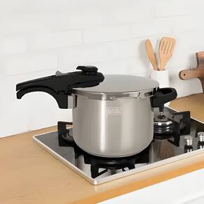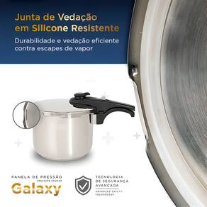 DESCRIÇÃO RESUMIDA A Panela de Pressão BLACK+DECKER Galaxy de 6 Litros é ideal para quem busca segurança máxima e alta performance no cozimento. Feita em Aço Inoxidável, ela possui base compatível com Indução (funciona em todos os tipos de fogão) e conta com um total de 7 Dispositivos de Segurança, incluindo regulador de pressão. Seu design durável e moderno garante um cozimento rápido e uniforme, proporcionando tranquilidade total no dia a dia.
