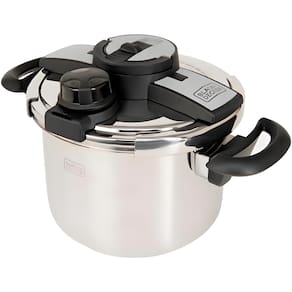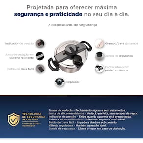 DESCRIÇÃO RESUMIDA A Panela de Pressão BLACK+DECKER Galaxy Pro de 6 Litros é ideal para chefs exigentes, combinando durabilidade, segurança e eficiência. Fabricada em Aço Inoxidável, possui base tripla compatível com todos os tipos de fogão, incluindo o de Indução, garantindo cozimento uniforme. É o modelo mais seguro da linha, oferecendo um total de 7 Dispositivos de Segurança e regulador de pressão para um manuseio confiável e resultados precisos.