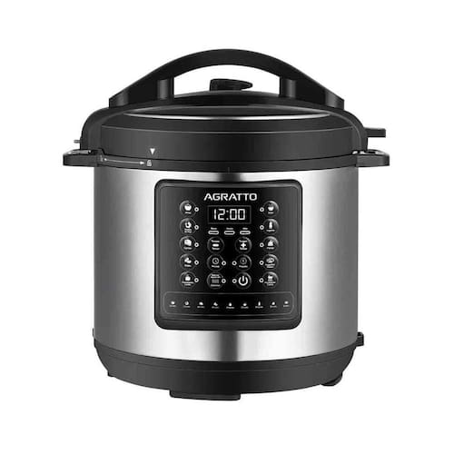 Painel digital com 10 receitas pré-definidas (iogurte, arroz, feijão, carnes, legumes), funções de cozinhar, refogar e aquecer. Sistema de cozimento a pressão. Materiais: aço inox e plástico. Tampa em aço inoxidável. Trava de segurança. Sistema de proteção térmica. Função timer., Painel digital com 10 receitas pré-definidas (iogurte, arroz, feijão, carnes, legumes), funções de cozinhar, refogar e aquecer. Sistema de cozimento a pressão. Materiais: aço inox e plástico. Tampa em aço inoxidável. Trava de segurança. Sistema de proteção térmica. Função timer.Lâmpada piloto