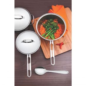 Panela Tramontina Allegra 16cm Em Aço Inox A Tramontina usa a mais alta tecnologiapara produzir panelas de aço inox com fundo triplo. São duas camadas de açoinox envolvendo uma camada de alumínio. Dessa forma, o calor da chama sedistribui por igual, deixando os alimentos muito mais macios e saborosos. Alémdisso a comida cozinha muito mais rápido, o que acaba gerando economia.