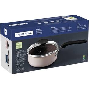 A Panela Tramontina Alumínio Cerâmico Tunis 16cm Rosa oferece alta qualidade e desempenho, com revestimento cerâmico interno e siliconado externo que garantem uma distribuição uniforme de calor e cozimento rápido. Seu fundo de indução proporciona mais eficiência e segurança, enquanto o cabo metálico com proteção de silicone garante conforto e reduz a propagação de calor. Compatível com diversos tipos de fogões, incluindo indução, pode ser levada à máquina de lavar louças, facilitando a limpeza. Ideal para preparos rápidos e eficientes, possui capacidade de da sua total, é prática e elegante, e promete durabilidade e resistência em sua cozinha. Características: Marca: Tramontina Código do Fabricante: 28723416 Linha: Tunis Cor: Rosa Material: Alumínio Material da Tampa: Vidro temperado Material Pegadores: Silicone Material Alças/Cabos: Metálico com proteção de silicone Antiaderente: Sim Revestimento Cerâmico Diâmetro: 16cm Espessura: 3mm Capacidade: 1,35L Contato indutivo: 11cm Fogões Compatíveis: Gás, elétrico, vitrocerâmico e indução Compatível com Micro-ondas: Não Compatível com Lava-louças: Sim Pode ir ao Forno: Não Saída de vapor: Sim Livre de PFOA: Sim Marca: Não Informado