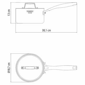 - Dimensões da embalagem (Compr. X Larg. X Alt.): 386 x 91 x 115 mm. Tipo de panela: Panela | Capacidade em volume: 2,2 L | Formato de venda: Unidade | Unidades por kit: 1 | Quantidade de sistemas de : 0 | Tipos de fogões compatíveis: A gás, Elétrico, Vitrocerâmico, Indução | Tipo de revestimento exterior: Aço Inoxidável | Tipo de revestimento interior: Aço Inoxidável | Tipo de base: Tripla | Material da panela: Aço Inoxidável | Com sistema de fechamento automático: Não | Com revestimento antiaderente: Não | Inclui tampa: Sim | Altura: 13 cm | Largura: 38,1 cm | Diâmetro: 18 cm | Peso: 1,45 kg | Linha: Grano | Material da tampa: Aço Inoxidável | Material da alça: Aço Inoxidável | Forma: Redonda | É apto para lava-louças: Sim | Cor: Cinza | supplier_declared_dg_hz_regulation: Não aplicável | Bullet_point0: 0 | Bullet_point1: 1 | Bullet_point2: 2 | cor: prata, inox | É kit de : Não | Peso Líquido: 0.0000 | Marca: Tramontina | EmbalagemComprimento-cm: 42 | EmbalagemLargura-cm: 15 | Modelo: Grano Corpo Triplo em Inox 62141/180 | EmbalagemAltura-cm: 23 | Dias Fornecedor: 0 | Cubagem: 0.014490 | Quantidade de peças: 1 | Adequado para fogão de indução: Sim