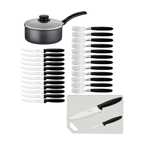 Panela Turim Alumínio Chumbo Antiaderente 1,4l + Cojunto Ipanema 24pc + Tábua E Facas - Tramontina