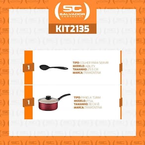 Muito importante:-- conferir produtos no ato do recebimento. Não aceitar produtos com embalagem violada amassado, rasgado, aberto, quebrado, etc , a recusa deve ser feita no ato.Componentes do kit:1 - panela turim alumínio antiaderente vermelho 18cm 2,0l ptv4 - tramontina 202627181 - colher para servir tramontina ability em nylon preto - tramontina 25156100panela turim alumínio antiaderente vermelho 18cm 2,0l ptv4 - tramontina 20262718prepare as melhores receitas, com a panela tramontina turim em alumínio com revestimento interno e externo em antiaderente starflon max vermelha 18 centímetros de diâmetro 2 litros. Ideal para praparos diários, ela é produzida em alumínio com espessura de 1,2 milímetros e proporciona o cozimento dos alimentos de maneira rápida e uniforme. Seu revestimento interno e externo é em antiaderente starflon max, material que evita que os alimentos grudem, a torna fácil de limpar, mais durável e não prejudicial a saúde. Seu cabo é de baquelite, material antitérmico que não aquece e garante maior conforto e segurança no manuseio. Além de todas essas características, ela ainda é muito fácil de limpar e pode ser levada à máquina de lavar louças, facilitando o seu dia na cozinhacom a colher para servir tramontina ability em nylon preto você terá o utensílio perfeito para servir aquele almoço delicioso para sua família. Ela é produzida em nylon na cor preto, resiste a temperaturas de até 180c e é ideal para uso em panelas com revestimentos antiaderentes ou cerâmicos. Além disso, é fácil de limpar e poder ir à máquina de lavar louças, facilitando muito mais sua rotina na cozinhagarantia: 90 dias de legal para vícios ou defeitos de fabricação.Informações técnicas:- capacidade: 2l- alumínio com 1,2mm de espessura- revestimento anti-aderente;- não utilizar em temperaturas superiores à 260c.Informações técnicas utensílios:- material: nylon- coleção: ability- lava louças: sim- cor: pretodimensões:panela: 14 a x 34 l x 18 p cmcolher para servir - 29,5 a x 7,3 l x 3,7 p cmperguntas frequentes: - pode ir ao lava-louças Sim- a colher é resistente até qual temperatura180 grauspanela antiaderente, vermelha, 1,4l, colher para servir, tramontina, utensílios de cozinha, panela de cozinha, qualidade em utensílios, design tramontina, ferramentas de cozinha, cozinha prática, preparo de alimentos, utensílios para cozinhar, panela com colher para servir.