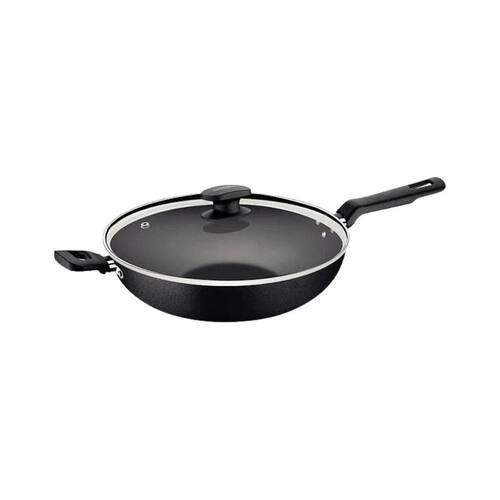 Panela Wok 28CM 3,3L Loreto Grafite Antiaderente Tramontina Preparar suas receitas favoritas ficou muito mais prático com a wok Tramontina Loreto em alumínio com revestimento interno antiaderente starflon max com tampa de vidro 28 cm de diâmetro 3,3 L. Produzida em alumínio com revestimento interno e externo de antiaderente Starflon Max, possui maior poder de antiaderência, maior resistência à abrasão e maior durabilidade. Possui cabo e alça em baquelite antitérmico e pegador em nylon, que proporcionam um manuseio confortável e seguro. A tampa é produzida em vidro temperado com saída de vapor e borda de aço inox. A Wok Tramontina garante rapidez no preparo graças ao seu formato e seu revestimento proporciona um cozimento muito mais saudável, pois exige baixa utilização de gordura, preservando ainda mais as propriedades nutritivas dos alimentos, ressaltando o sabor de seus pratos. Marca: Não Informado