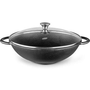 Panela Wok 36Cm Ferro Fundido Com Tampa De Vidro - Mta