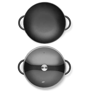 Panela MTA wok de ferro fundido é excelente para o uso em casa ou no comercio. Possui tampa de vidro temperado, que possibilita visualizar o alimento durante o preparo, cabos e pomel antitérmico e anti-chamas.