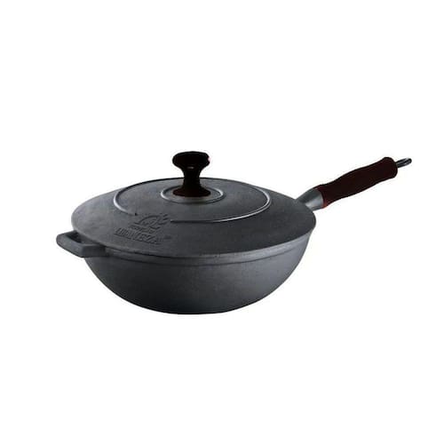 01 Panela Wok em Ferro Fundido com Alça Silicone Preto
