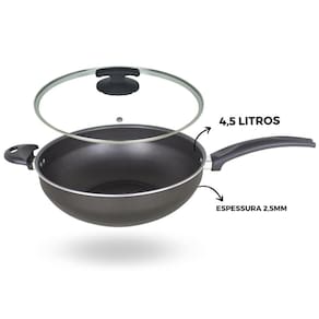 - Capacidade Espaçosa: Com uma generosa capacidade de 4,5 litros, nossa panela wok é ideal para preparar refeições nutritivas e saborosas para toda a família ou para receber convidados especiais.