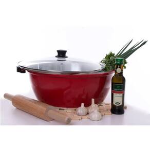 Panelão 36 cm vermelho Resumo: Feita em alumínio fundido e com cabos de baquelite que são isolantes térmicos e resistentes ao calor. Detalhes do produto: Feita em alumínio fundido e com cabos de baquelite que são isolantes térmicos e resistentes ao calor, a linha tradicional da gulê garante mais segurança na hora de cozinhar. Com um design único e seis opções de cores, as panelas gulê são excelentes para preparar o seu alimento, decorar sua cozinha e são resistentes ao uso devido a sua espessura além da pintura suportar até 200c. Fabricante: gulê