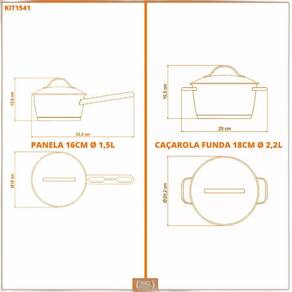 Muito importante: -- conferir produtos no ato do recebimento. Não aceitar produtos com embalagem violada amassado, rasgado, aberto, quebrado, etc , a recusa deve ser feita no ato. Conjunto de panelas allegra inox 2 peças fundo triplo 16 e 18 cm - tramontina Componentes do kit: - 1 panela allegra aço inox fundo triplo fogões de indução 16 cm 1,5 l - tramontina 62651161 - 1 caçarola funda allegra aço inox fundo triplo fogões de indução 18 cm 2,2l - tramontina 62654181 Panela allegra aço inox fundo triplo fogões de indução 16 cm 1,5 l - tramontina 62651161: Informações adicionais: - tipo: panela - material: aço inox - litragem: 1,5l - linha: allegra - possui revestimento Não Medidas do produto: - total com tampa : 13,9 cm a x 18 cm l x 33,3 cm p - embalado: 12 cm a x 25 cm l x 36 cm p - diâmetro interno: 16 cm - diâmetro externo: 18 cm - peso líquido: 0,6 kg - peso bruto: 0,85 kg Caçarola funda allegra aço inox fundo triplo fogões de indução 18 cm 2,2l - tramontina 62654181: Informações adicionais: - tipo: caçarola - material: aço inox - litragem: 2,2l - linha: allegra - possui revestimento Não Medidas do produto: - total com tampa : 15,5 cm a x 20,2 cm l x 25 cm p - embalado: 12 cm a x 22 cm l x 27 cm p - diâmetro interno: 18 cm - diâmetro externo: 20,2 cm - peso líquido: 0,82 kg - peso bruto: 0,90 kg Perguntas frequentes: - pode ir na máquina de lavar Pode sim. - é compatível com fogões por indução Sim, perfeitamente compatível. Também poderá utilizar nos modelos: gás, elétrico e vitrocerâmico - resistência elétrica - pode ser levado ao forno Sim, temperatura máxima de 260ºc. : 90 dias de legal para vícios ou defeitos de fabricação. Certificação: produto com certificação compulsória certificada pela ocp 0104- pcn do brasil, registro 001470/2018, conforme portaria inmetro 419/2012. Tamanho da embalagem: 19cm a x 36cm l x 25cm p Peso: 1,7kg