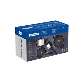 Jogo de Panelas Tramontina Solar Ceramic em Aço Inox Fundo Triplo com Revestimento Interno Cerâmico Grafite 4 Peças