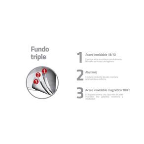 Economiza tempo e energia: o segredo está no fundo triplo (aço inox alumínio aço inox), que distribui o calor uniformemente, proporcionando um cozimento mais rápido. Por isso, você pode manter o fogo baixo durante todo o preparo e, assim, poupar energia.
