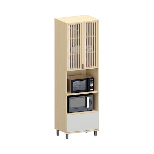 O Paneleiro 100 MDF 2 Portas com Vidro 1 Gaveta com Espaco Torre Quente 70cm Aura Luciane Moveis, composta por 2 portas de vidro, 1 gavetao e 2 nichos, e a escolha perfeita para organizar e modernizar sua cozinha. Desenvolvida pela Luciane Moveis, linha Aura, este movel combina design sofisticado e alta funcionalidade, com espacos amplos para armazenar micro-ondas, utensilios e outros objetos da cozinha.