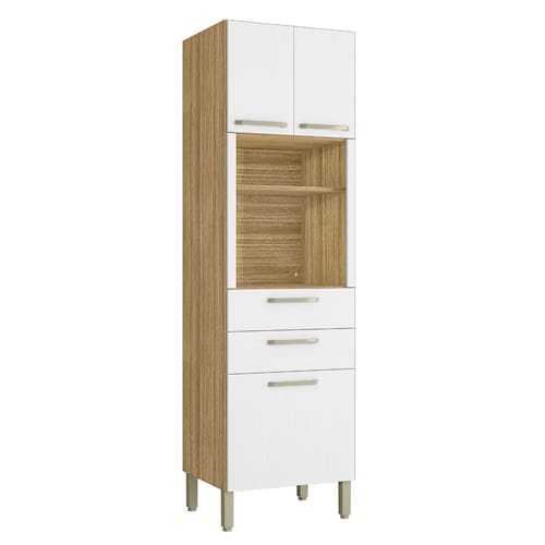 O Paneleiro possui três gavetas de tamanhos distintos que permitem liberdade para melhor organização do espaço, além de nicho para eletrodomésticos diversos e duas gavetas com ampla abertura garantida pelas corrediças telescópicas, para fechar, conta com puxadores ergonômicos feitos em plástico resistente.