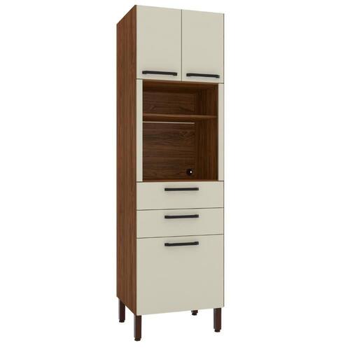 O Paneleiro possui três gavetas de tamanhos distintos que permitem liberdade para melhor organização do espaço, além de nicho para eletrodomésticos diversos e duas gavetas com ampla abertura garantida pelas corrediças telescópicas, para fechar, conta com puxadores ergonômicos feitos em plástico resistente.