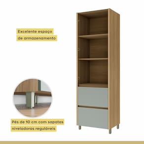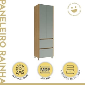 Paneleiro 2 portas Rainha. 100% MDF, com design moderno e funcional. Puxadores perfil gola, molduras robustas e portas com dobradiças slowmotion. Prateleiras bem distribuídas, pés reguláveis e acabamento premium. Montagem prática e resistente, com acessórios para fixação e proteção contra umidade.