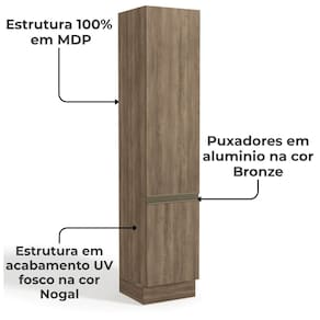 Beleza, resistência e funcionalidade que fazem a diferença no seu dia a dia. Produto fabricado 100% em MDP com espessura de 15mm, acabamento em pintura texturizada UV (fosco) ou (semibrilho). Conta com 2 portas equipadas com dobradiça reta de 35mm com amortecedores, puxadores em alumínio e 5 prateleiras internas para melhor otimização de espaço. O móvel possui sistema de montagem flex, podendo ser instalado suspenso, ou com rodapé adaptando-se ao seu projeto e à sua necessidade. Este móvel chegará na sua casa separado em 02 volumes.