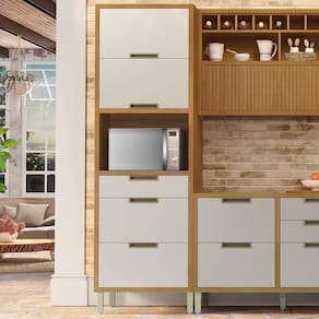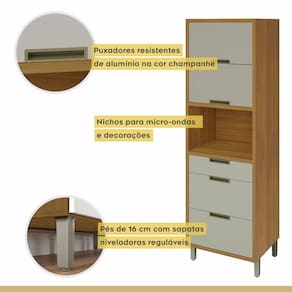 Paneleiro 2 Portas 3 Gavetas Imperatriz Nesher Móveis Freijó/off White O Paneleiro Nesher Imperatriz tem design contemporâneo, robusto e é muito prático. Inspirada em cozinhas planejadas, está disponível em módulos, permitindo composições variadas, projetos exclusivos, conforme o espaço e o gosto do consumidor. Disponível em duas cores de porta, off-white e grafite, como o corpo sempre amadeirado freijó. Projetada para proporcionar praticidade e funcionalidade no uso diário, produzida com matérias prima de e ferragens tecnológicas de última geração. Todo o projeto foi pensado para embelezar seu Paneleiro com muita praticidade no uso e muita qualidade e durabilidade no dia a dia. Diferenciais únicos: - Modernas portas com abertura basculante e pistão a gás. - Puxadores em perfil de Alumínio Anodizado na cor champanhe, moderno, com qualidade e durabilidade. - Gavetas com corrediça telescópica abertura integral e organizador de talheres. - Ergonômicos gavetões com laterais e traseiros altos para armazenagem com de utensílios e mantimentos. - prático gaveta porta temperos e gaveta com organizador de talheres. Medidas Altura: 221cm Largura: 70cm Profundidade: 52cm