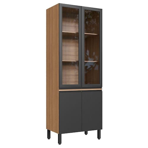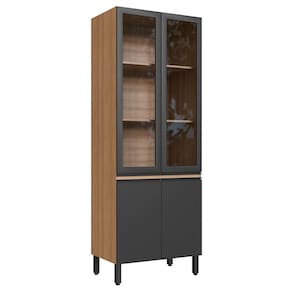 O(a) Paneleiro 4 Portas 3 Prateleiras com Vidro Montana/Grafite - Quiditá Móveis é produzido em MDP na escala de brilho Semi-Brilho, e possui um grau de dificuldade de montagem: Médio.