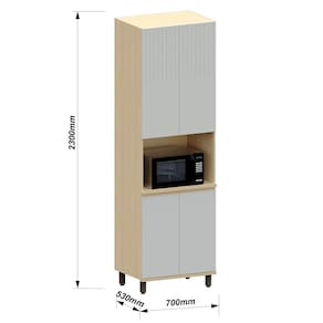 Organize sua cozinha com estilo e praticidade com o Paneleiro Aurora com nicho para micro-ondas! Com 230 cm de altura, esse móvel imponente oferece amplo espaço interno com 4 prateleiras bem distribuídas, ideal para armazenar panelas, utensílios e mantimentos. Sua estrutura em MDP reforçado e portas em MDF de 18 mm garantem resistência e durabilidade, enquanto o acabamento em pintura UV realça a beleza do design moderno. As dobradiças metálicas com amortecimento e os puxadores tipo “J” em MDF proporcionam um toque de sofisticação e funcionalidade. Além disso, os pés com regulagem de altura na elegante cor conhaque completam o visual, tornando o paneleiro a escolha perfeita para cozinhas moduladas.