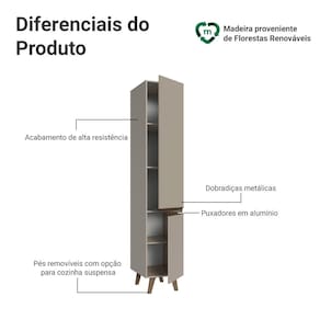 Produzido com materiais de qualidade, o paneleiro conta com dobradiças metálicas nas portas e puxadores em perfil de alumínio, discretos e resistentes, o acabamento de alta resistência mantém a beleza do móvel por muito mais tempo.