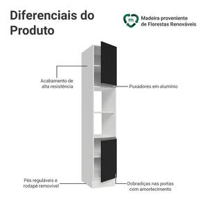 As portas possuem dobradiças com amortecimento, que proporcionam fechamento suave e silencioso. Os pés possuem regulagem de altura e o rodapé removível facilita a limpeza.