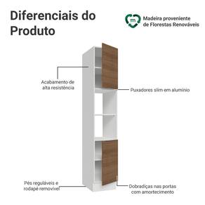 As portas possuem dobradiças com amortecimento, que proporcionam fechamento suave e silencioso. Os pés possuem regulagem de altura e o rodapé removível facilita a limpeza.
