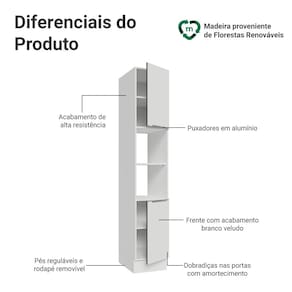 Com acabamento branco veludo, o móvel traz sofisticação e estilo à sua cozinha, enquanto os puxadores em aço escovado champagne completam o design do móvel.