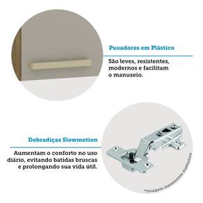 Desenvolvida com materiais de excelência, a Cozinha Isis oferece excelente distribuição de espaço interno. É estruturada em 100 MDP e possui dobradiças slow motion com amortecedor incorporado para fechamento suave das portas. Conta com puxadores tipo Aste em Plástico Gold dando um toque especial de classe e elegância.