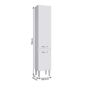 Informações do Produto Marca: IRM Modelo: Light Referência: CZ6294BR Tipo: Paneleiro Ambiente: Cozinha Cor: Branco Material: MDP 12mm Acabamento: Fosco com Pintura UV Diferenciais: O Paneleiro Light oferece praticidade para guardar e organizar seus utensílios e objetos, conta com 3 prateleiras que suportam até 4kg e 2 portas para melhor armazenamento. Espaço para forno ou microondas: Não Portas: 02 portas Vidro: Não Prateleiras: Sim, 03 prateleiras Gavetas: Não Puxador: Plástico Limpeza: Utilizar pano macio levemente umedecido. Pés: Sim, pés com regulagem de altura Altura dos pés: 17cm Peso suportado nas prateleiras: Até 4kg Necessita montagem: Sim Dimensões do produto montado (A x L x P): 194cm x 38,5cm x 32cm Peso do produto montado: 23,25kg Dimensões do produto embalado (A x L x P): 7cm x 39cm x 179cm Peso do produto embalado: 24kg Quantidade de volumes: 1 volume Conteúdo do volume: 01 Paneleiro e 01 Manual de Montagem Garantia: 3 meses