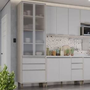 Paneleiro Alto Para Cozinha Com Portas De Vidro Atenas Cinza Cristal/vidro Canelado