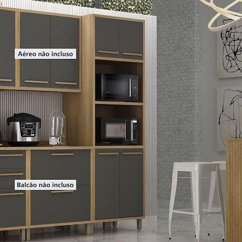 O armario de cozinha com nicho para forno/micro ondas serve para cozinhas pequenas? Por ser compacto, ele cabe em varios ambientes. O armario e facil de instalar? Sim, o armario tem um processo de instalacao simples.