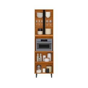 Possui dobradiças reforçadas de 26mm, 3 prateleiras internas, nicho micro-ondas (A.52cm x L.57cm x P.50cm), puxadores pretos em polímero, pés reguláveis de 17cm em PVC, em MDP em pintura UV e acabamento acetinado nas portas.