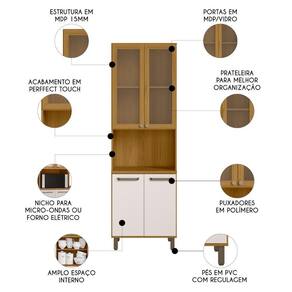 O Paneleiro Torre Quente conta com um Nicho Para Micro-ondas ou forno elétrico, que otimiza o espaço e facilita a rotina. Possui quatro portas, sendo duas delas com vidro incolor e moldura delicada. As dobradiças metálicas reforçadas proporcionam uma abertura suave e maior durabilidade no dia a dia. Os puxadores em polímero completam o visual impecável do Paneleiro trazendo destaque na decoração.