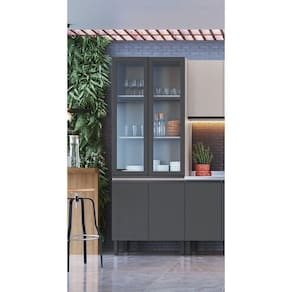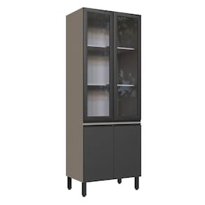 Paneleiro Cristaleira 80cm 4 Portas Quiditá Fumê/fumê/grafite/vidro