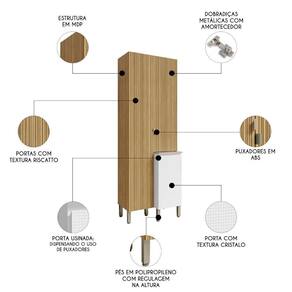 As portas na parte superior possuem puxadores em ABS e textura riscatto, combinando perfeitamente com a porta inferior que apresenta textura cristalo e confere ao Paneleiro de Cozinha um visual contemporâneo e marcante. As dobradiças metálicas com amortecedor proporcionam um fechamento suave e sem impactos. Além disso, os pés são reguláveis, permitindo ajustar pequenos desníveis de piso e manter a estabilidade do produto.